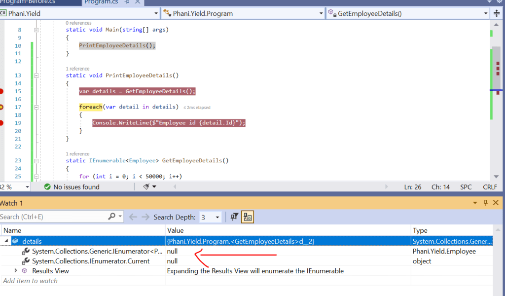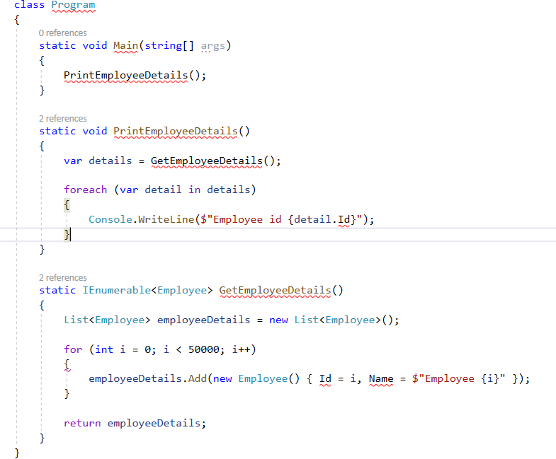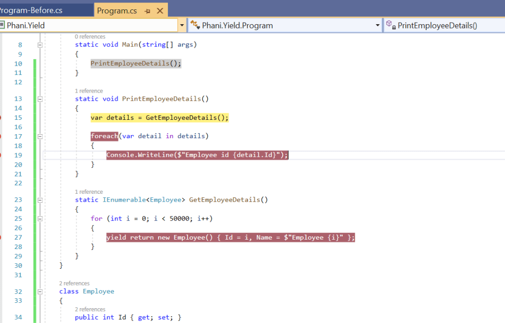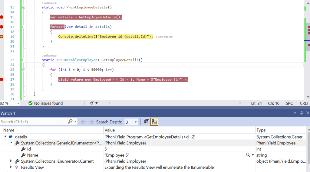 The only change we do is remove list of details to return and just return only single yield return in for loop
